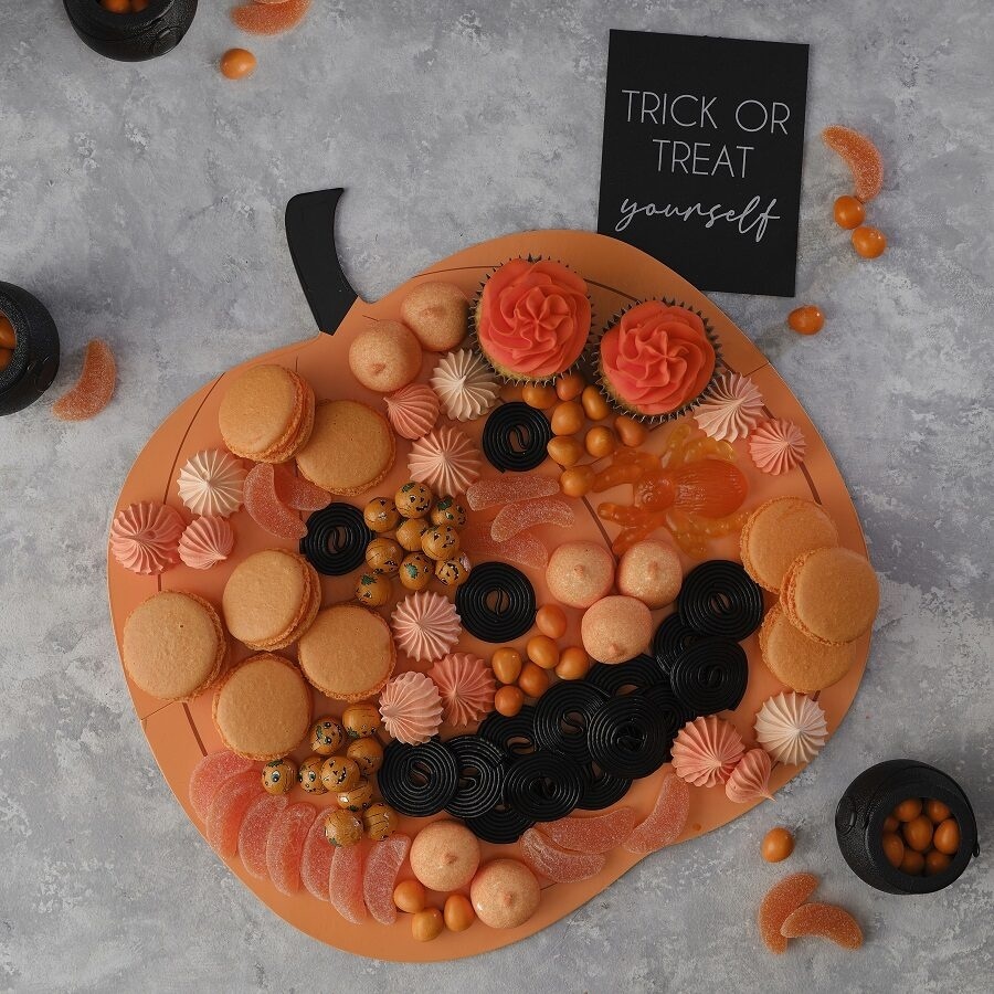 Εντυπωσιάστε την οικογένεια και τους φίλους με το μοναδικό ταμπλό για σερβίρισμα φαγητού σε σχήμα Κολοκύθας. Περιέχει ενα πλατό σε σχήμα Κολοκύθας για το σερβίρισμα του φαγητού στο Halloween πάρτι σας, και μία ταμπελίτσα ‘Trick or Treat Yourself’. Αυτή η πιατέλλα ειναι ότι χρειάζεστε για να συμπληρώσετε το Halloween ντεκόρ στο τραπέζι σας.
