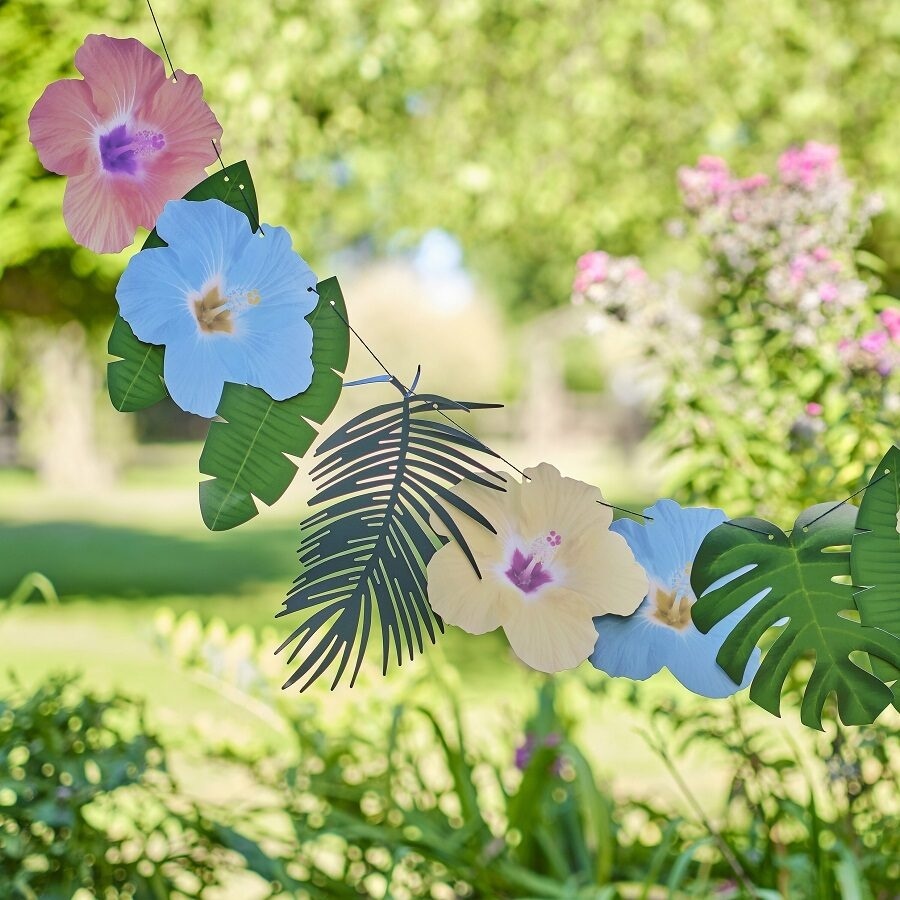 With hibiscus florals and palm leaf details, this eco-friendly garland is the perfect accessory for your party.