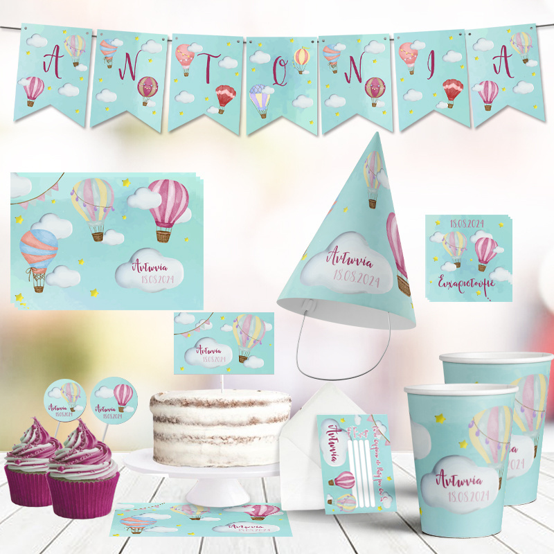 - Καπελάκια πάρτυ με όνομα Αερόστατο/8τμχ