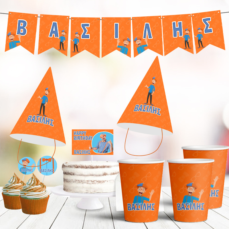 - Καπελάκια πάρτυ με όνομα Blippi/8τμχ
