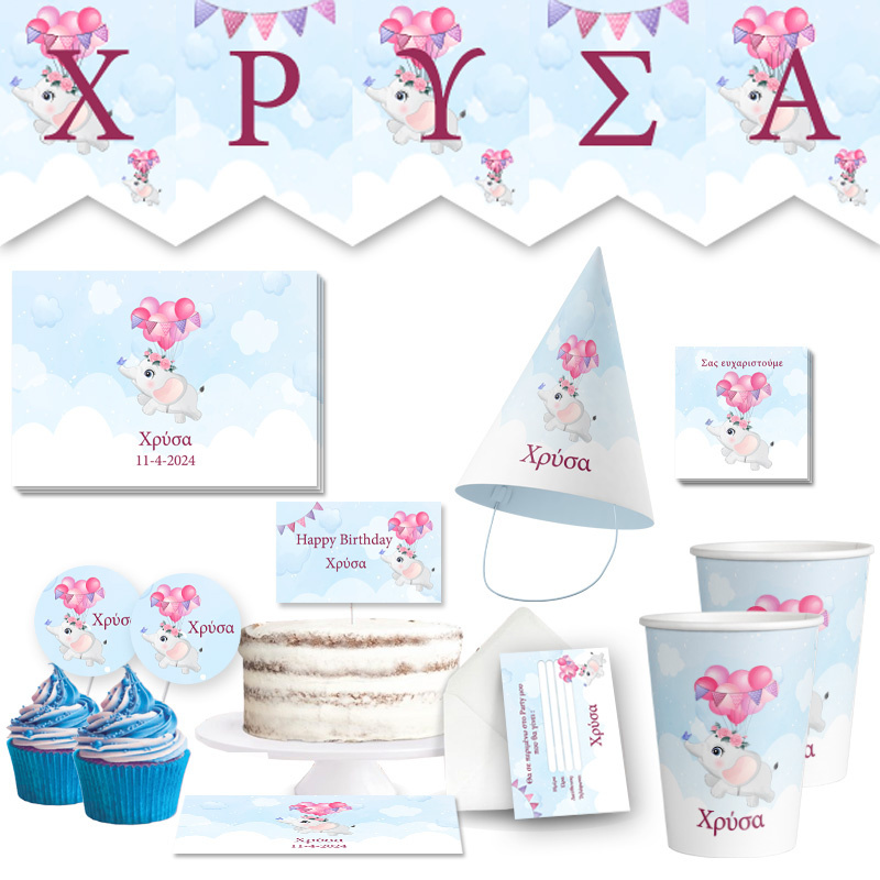 Ένα ολοκληρωμένο σετ πάρτυ Ελεφαντάκι για Κορίτσι!