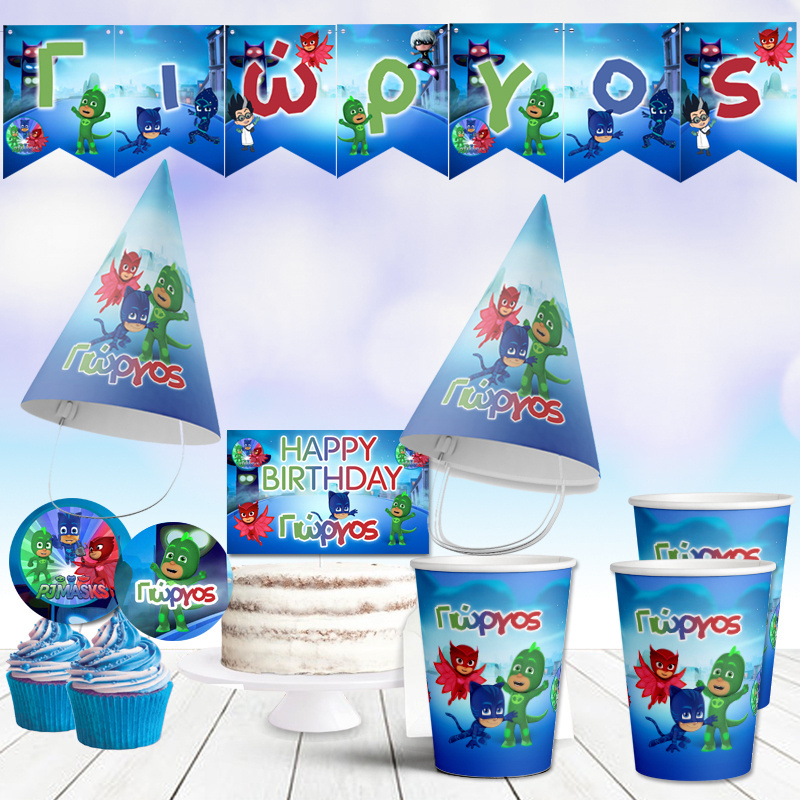 - Καπελάκια πάρτυ με όνομα PJ Masks/8τμχ
