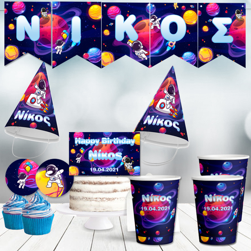 Το πάρτυ γενέθλιων σου φέτος θα είναι με θέμα Space. Βαλτέ το καπελάκι σας, κρεμάστε τα σημαιάκια σας και φύγαμε για πάρτυ.
