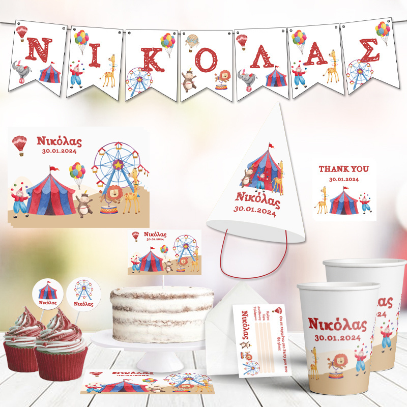 - Διακόσμηση τούρτας Τσίρκο & cupcake toppers/8τμχ