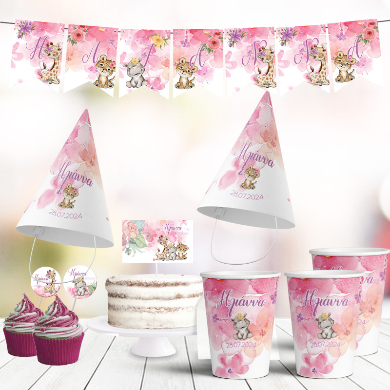 Το πάρτυ γενέθλιων σου φέτος θα είναι με θέμα Ζωάκια ζούγκλας Κορίτσι.Βάλτε το καπελάκι σας!