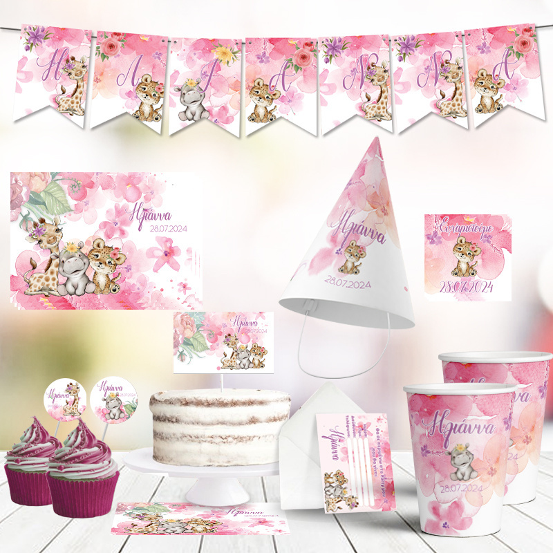 Ένα ολοκληρωμένο σετ πάρτυ Ζωάκια ζούγκλας Κορίτσι!