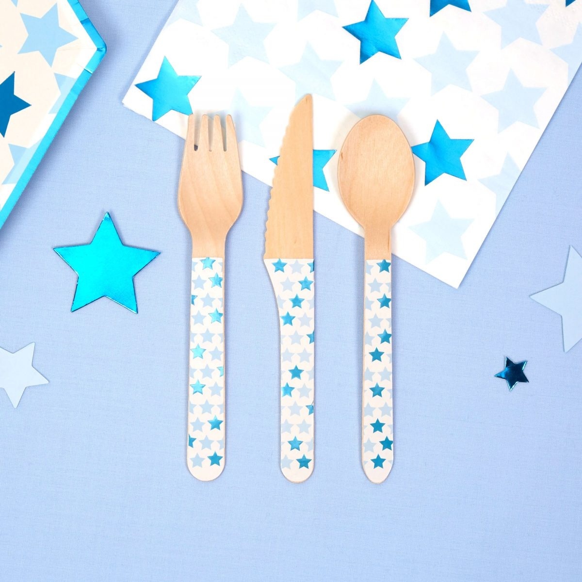 Σετ Ξύλινα Μαχαιροπίρουνα Little Star Blue 24 τεμ.