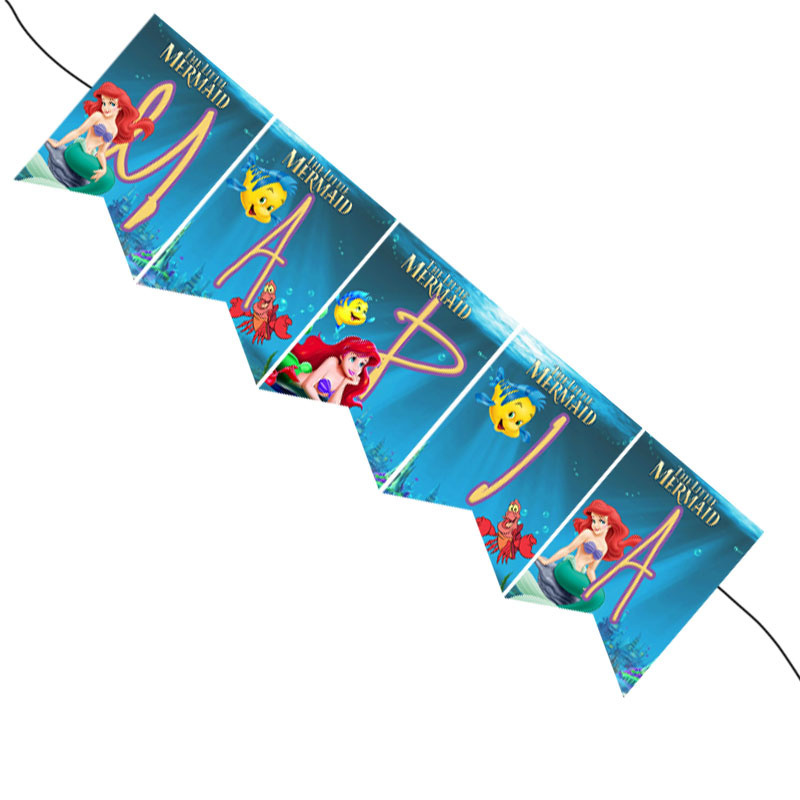 Κρεμαστά διακοσμητικά σημαιάκια με όνομα για το πάρτυ σας, με θέμα την αγαπημένη γοργόνα των κοριτσιών Ariel!