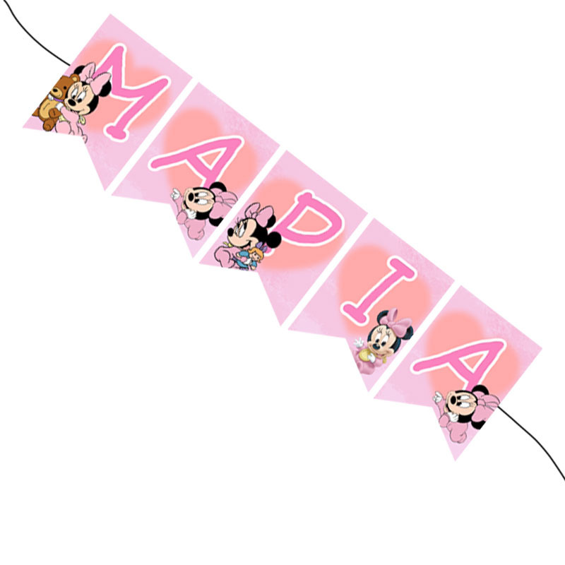 Κρεμαστά διακοσμητικά σημαιάκια με όνομα για το πάρτυ σας, με θέμα την αγαπημένη φίλη των κοριτσιών Minnie mouse!
