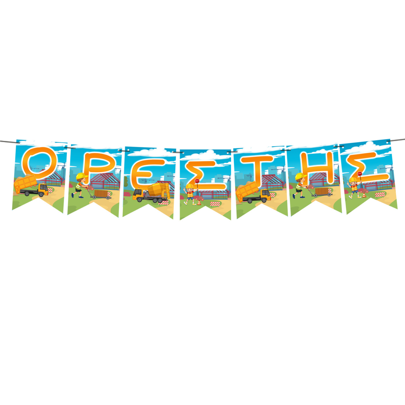 Διακοσμήστε το πάρτυ σας με τα υπέροχα κρεμαστά σημαιάκια Εργοτάξιο!