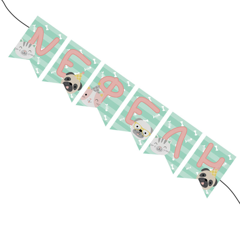 Κρεμαστά διακοσμητικά σημαιάκια με όνομα για το πάρτυ σας, με θέμα Hello Pets!