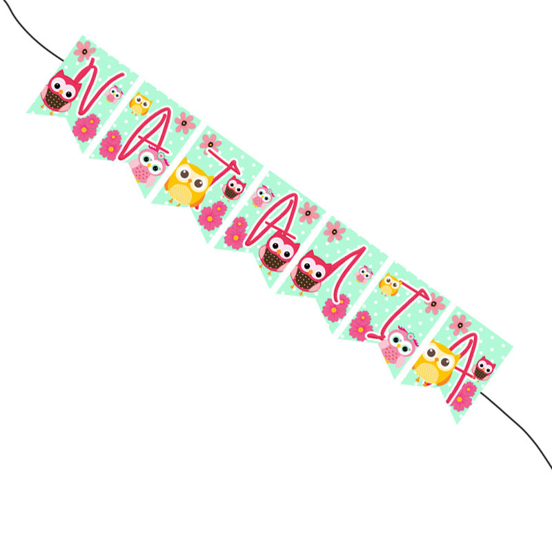 Κρεμαστά διακοσμητικά σημαιάκια με όνομα για το πάρτυ σας, με θέμα τις Κουκουβάγιες!