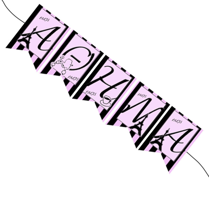 Κρεμαστά διακοσμητικά σημαιάκια με όνομα για το πάρτυ σας, με θέμα Paris!