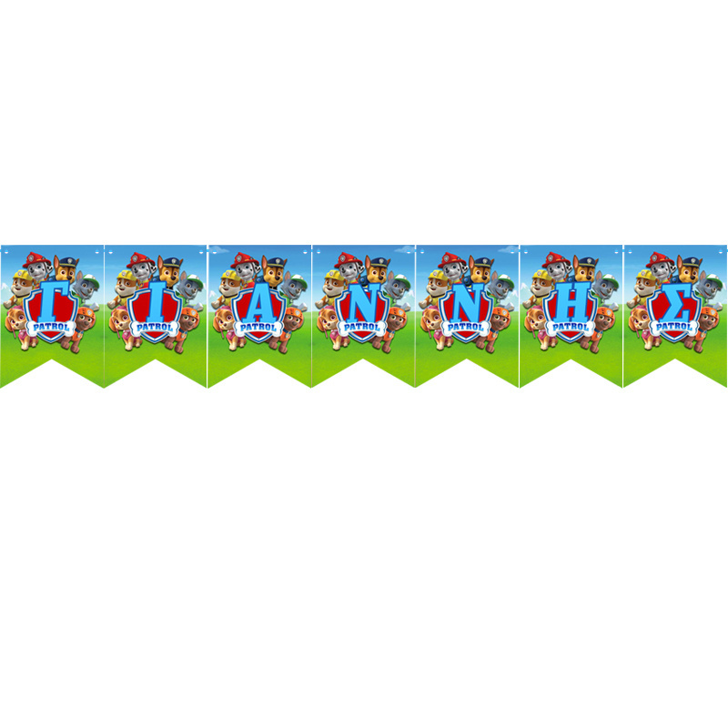 Κρεμαστά σημαιάκια για το πάρτυ σας, Paw Patrol! Γράψτε το όνομα του παιδιού σας. Το πάρτυ σας θα είναι ξεχωριστό με τα αγαπημένα μας κουταβάκια.