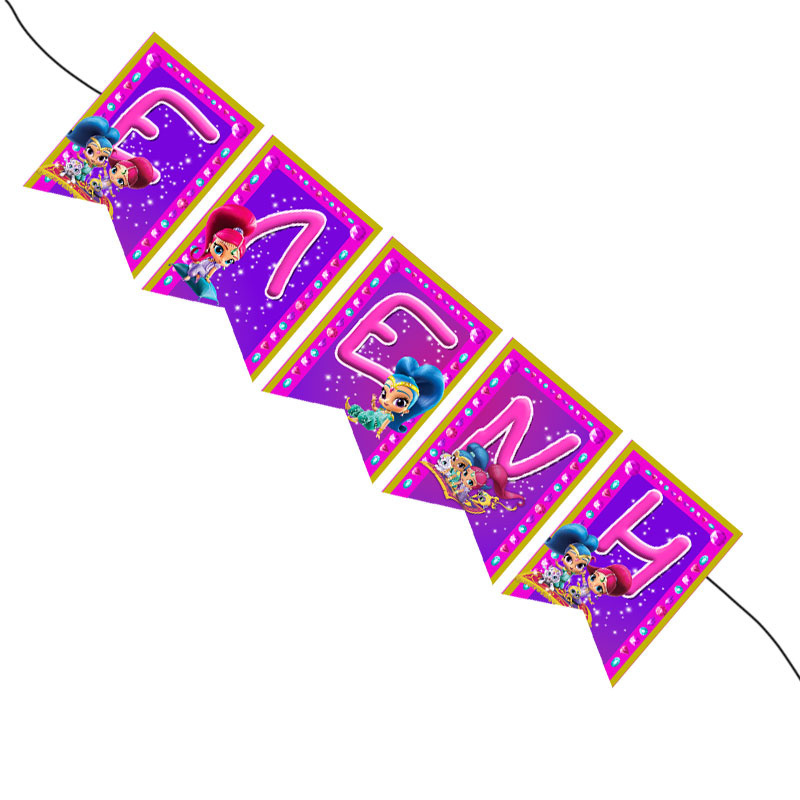 Κρεμαστά διακοσμητικά σημαιάκια με όνομα για το πάρτυ σας, με θέμα Shimmer & Shine!