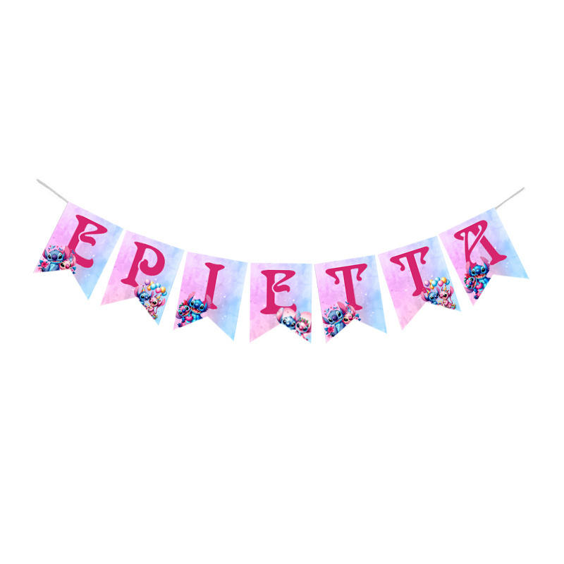 Διακοσμήστε το πάρτυ σας με τα υπέροχα κρεμαστά σημαιάκια Stitch & Angel!