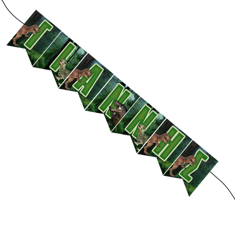 Κρεμαστά σημαιάκια με όνομα για το πάρτυ σας, με τον T-Rex! Ο μικρός σας θα ενθουσιαστεί!