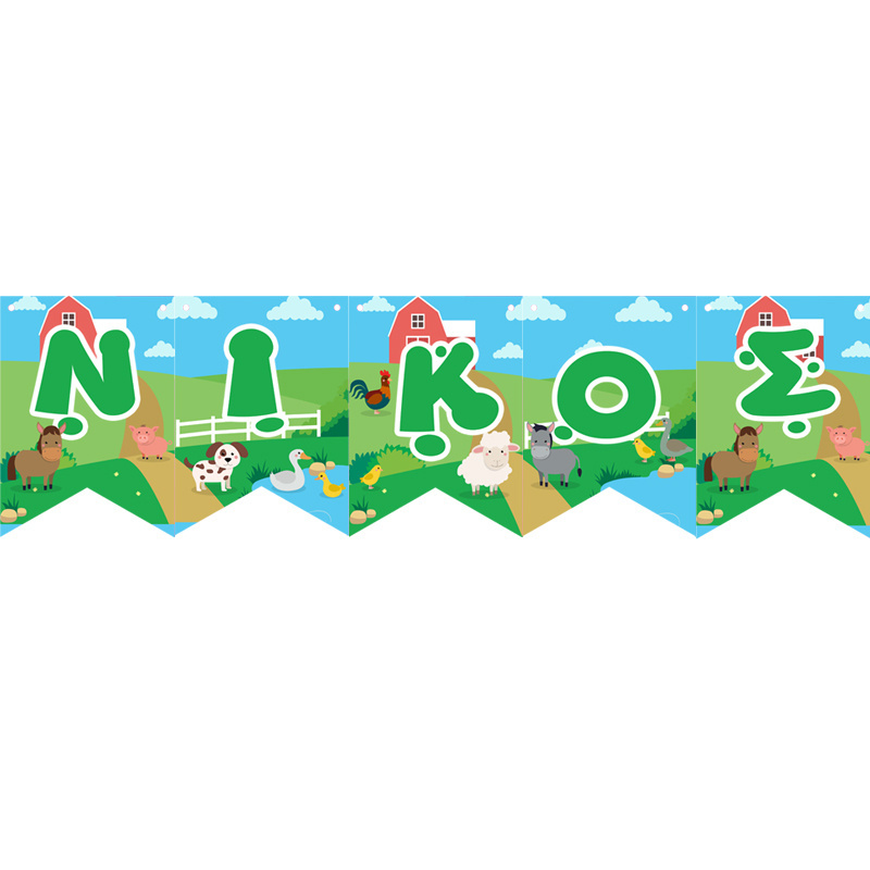 Κρεμαστά σημαιάκια με όνομα για το πάρτυ σας, με θέμα τα ζωάκια φάρμας!