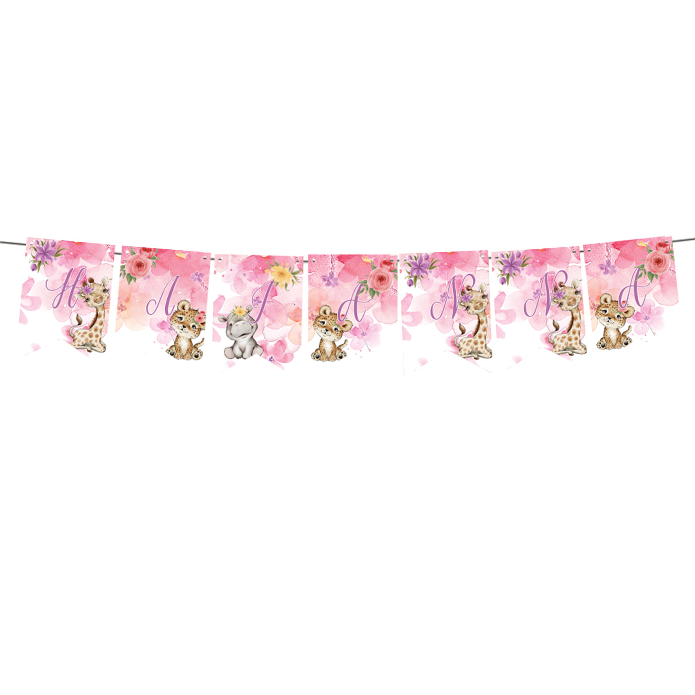 Διακοσμήστε το πάρτυ σας με τα υπέροχα κρεμαστά σημαιάκια Ζωάκια ζούγκλας κορίτσι!