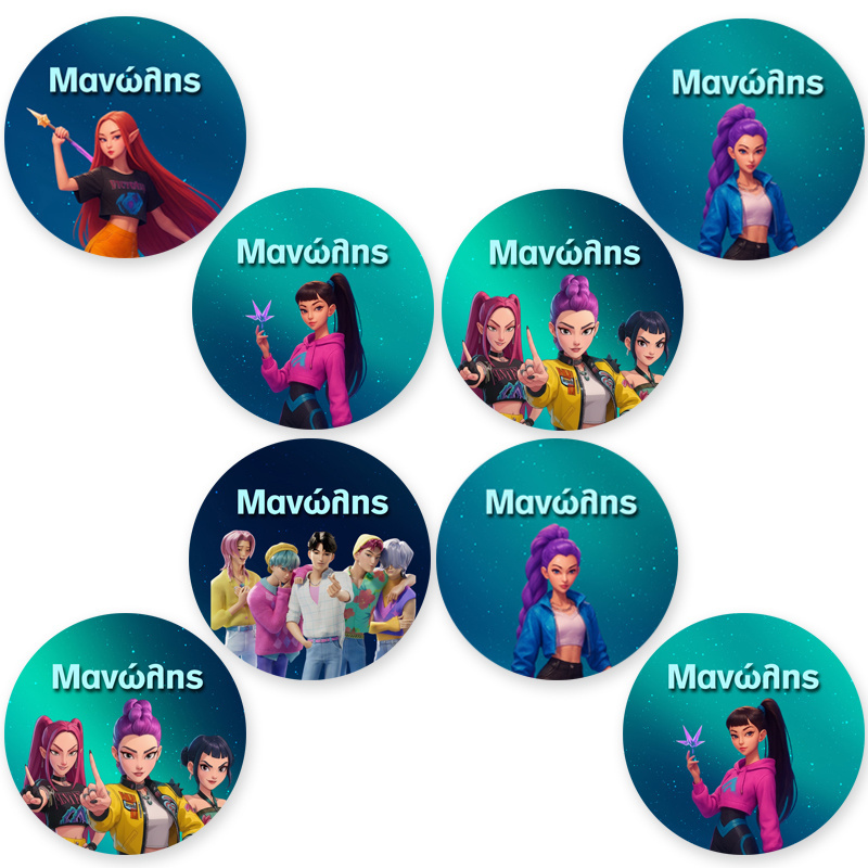 Τα αυτοκόλλητα K-Pop Demon Hunters είναι ιδανικά για να κολλάνε σε άλμπουμ, σε τετράδια, στο ποδήλατο, στο laptop, το skateboard και όπου αλλού μπορείτε να φανταστείτε.
