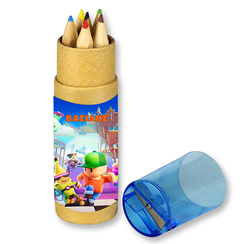 Σετ Ξυλομπογιές 6τμχ με ξύστρα Stumble Guys με όνομα ένα υπέροχο δωράκι για τους μικρούς μας φίλους. Για την Βάπτιση και το Πάρτι σας.
