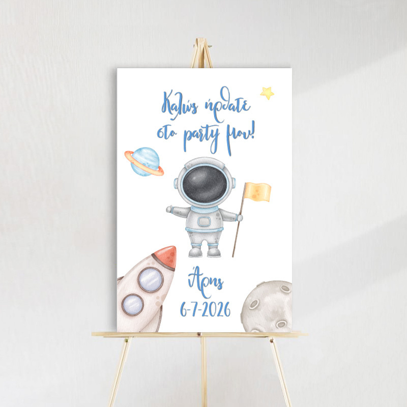 Ταμπέλα Πάρτυ με θέμα Αστροναύτης, φτιαγμένη από ξύλο, διαστάσεων 60x40cm. Προσθέστε μια μαγική πινελιά στo party του παιδιού σας με αυτή την όμορφη και μοναδική διακόσμηση.