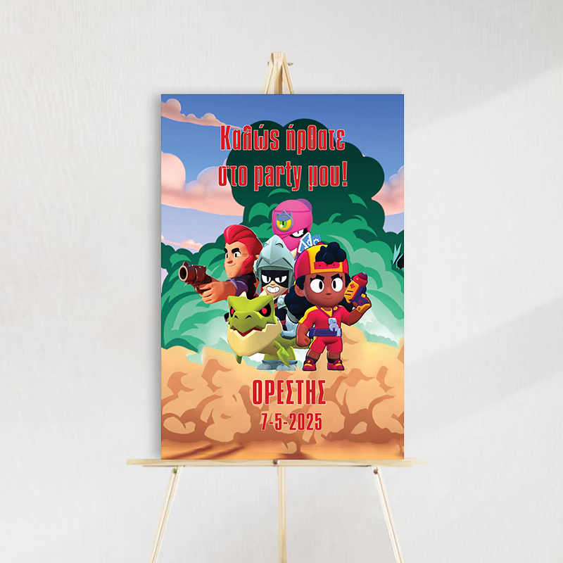 Ταμπέλα Πάρτυ με θέμα Brawl Stars, φτιαγμένη από ξύλο, διαστάσεων 60x40cm. Προσθέστε μια μαγική πινελιά στo party του παιδιού σας με αυτή την όμορφη και μοναδική διακόσμηση.