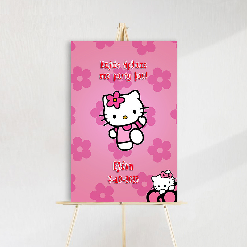 Ταμπέλα Πάρτυ με θέμα Hello Kitty, φτιαγμένη από ξύλο, διαστάσεων 60x40cm. Προσθέστε μια μαγική πινελιά στo party του παιδιού σας με αυτή την όμορφη και μοναδική διακόσμηση.