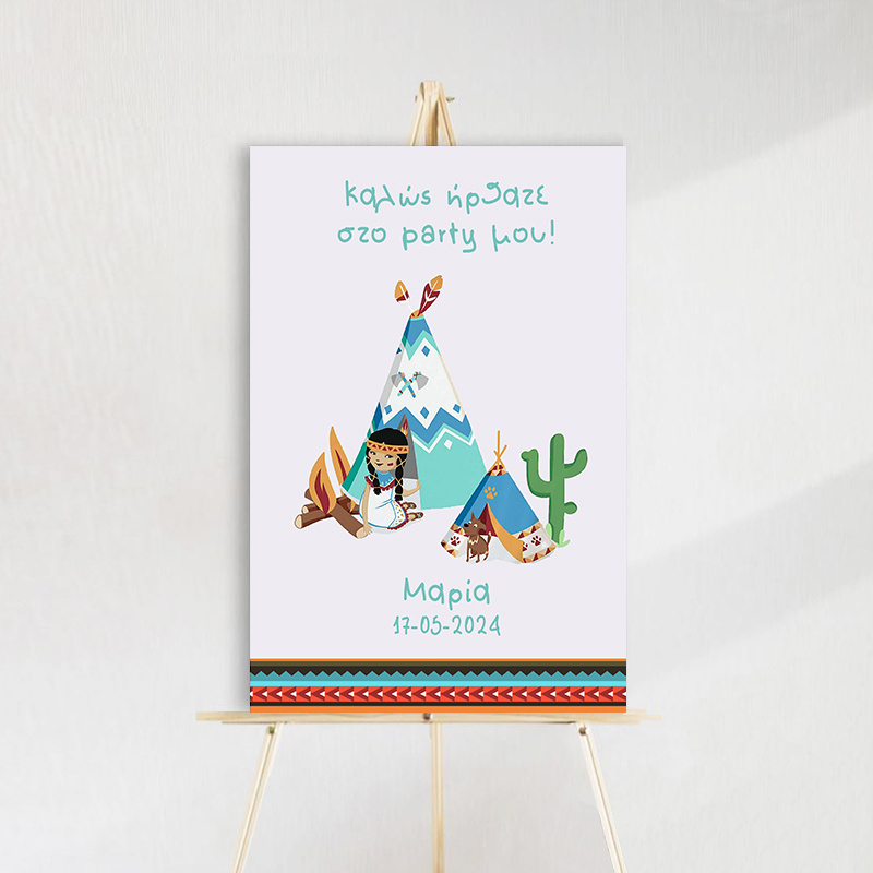 Ταμπέλα Πάρτυ με θέμα Ινδιάνος, φτιαγμένη από ξύλο, διαστάσεων 60x40cm. Προσθέστε μια μαγική πινελιά στo party του παιδιού σας με αυτή την όμορφη και μοναδική διακόσμηση.