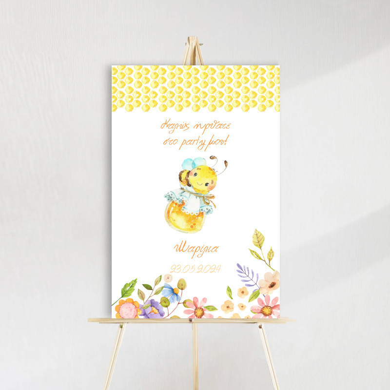 Ταμπέλα Πάρτυ με θέμα Μέλισσα, φτιαγμένη από ξύλο, διαστάσεων 60x40cm. Προσθέστε μια μαγική πινελιά στo party του παιδιού σας με αυτή την όμορφη και μοναδική διακόσμηση.