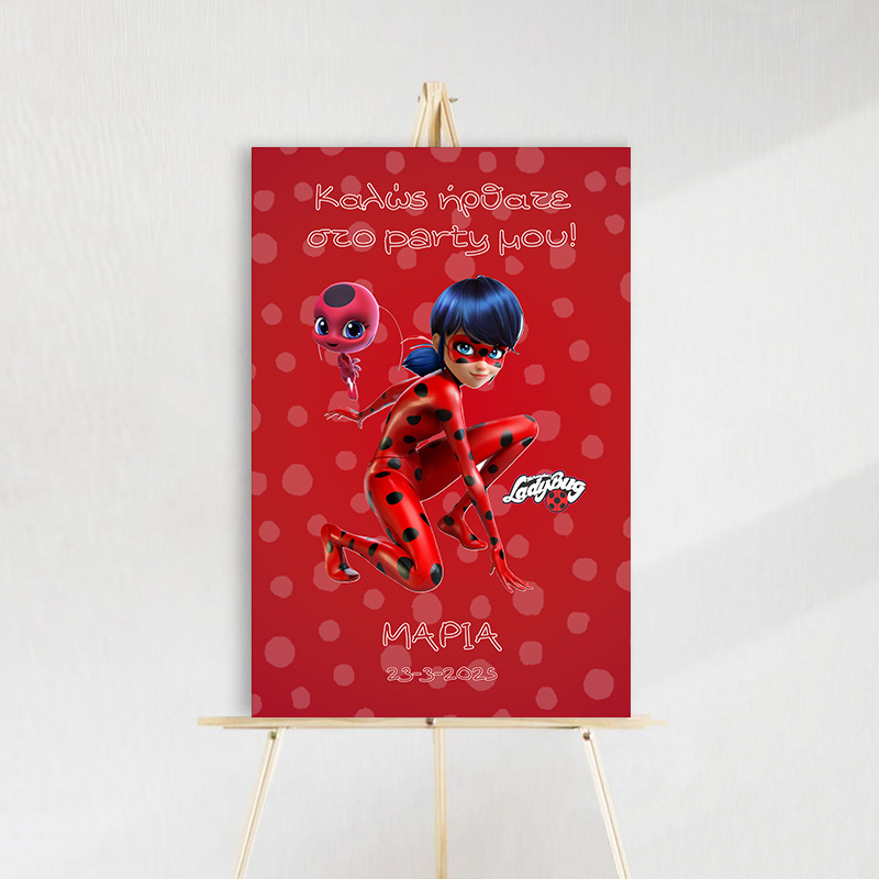 Ταμπέλα Πάρτυ με θέμα Miraculous LadyBug, φτιαγμένη από ξύλο, διαστάσεων 60x40cm. Προσθέστε μια μαγική πινελιά στo party του παιδιού σας με αυτή την όμορφη και μοναδική διακόσμηση.