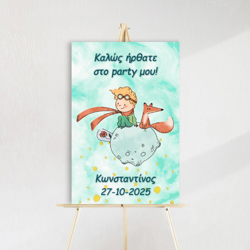 Ταμπέλα Πάρτυ με θέμα Μικρός Πρίγκιπας, φτιαγμένη από ξύλο, διαστάσεων 60x40cm. Προσθέστε μια μαγική πινελιά στo party του παιδιού σας με αυτή την όμορφη και μοναδική διακόσμηση.
