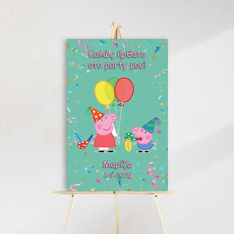 Ταμπέλα Πάρτυ με θέμα Peppa, φτιαγμένη από ξύλο, διαστάσεων 60x40cm. Προσθέστε μια μαγική πινελιά στo party του παιδιού σας με αυτή την όμορφη και μοναδική διακόσμηση.