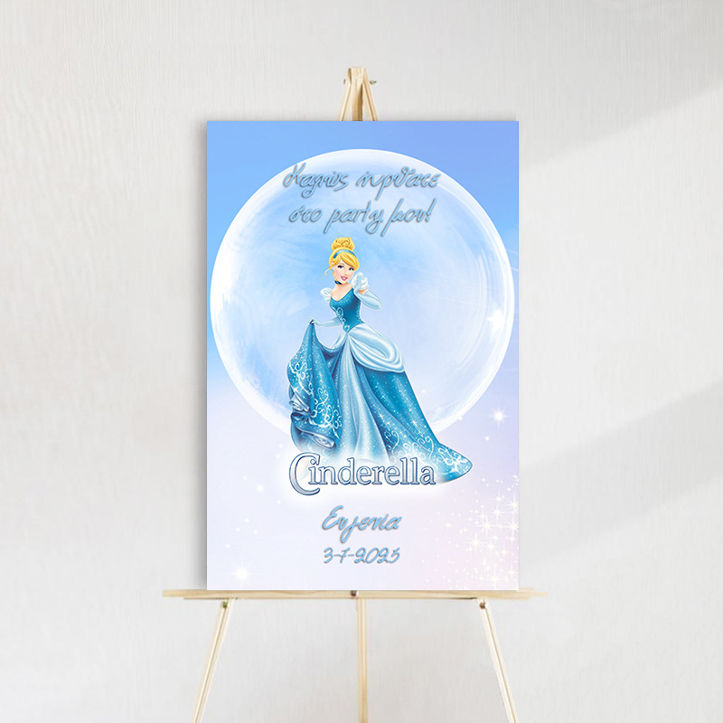 Ταμπέλα Πάρτυ με θέμα Σταχτοπούτα, φτιαγμένη από ξύλο, διαστάσεων 60x40cm. Προσθέστε μια μαγική πινελιά στo party του παιδιού σας με αυτή την όμορφη και μοναδική διακόσμηση.