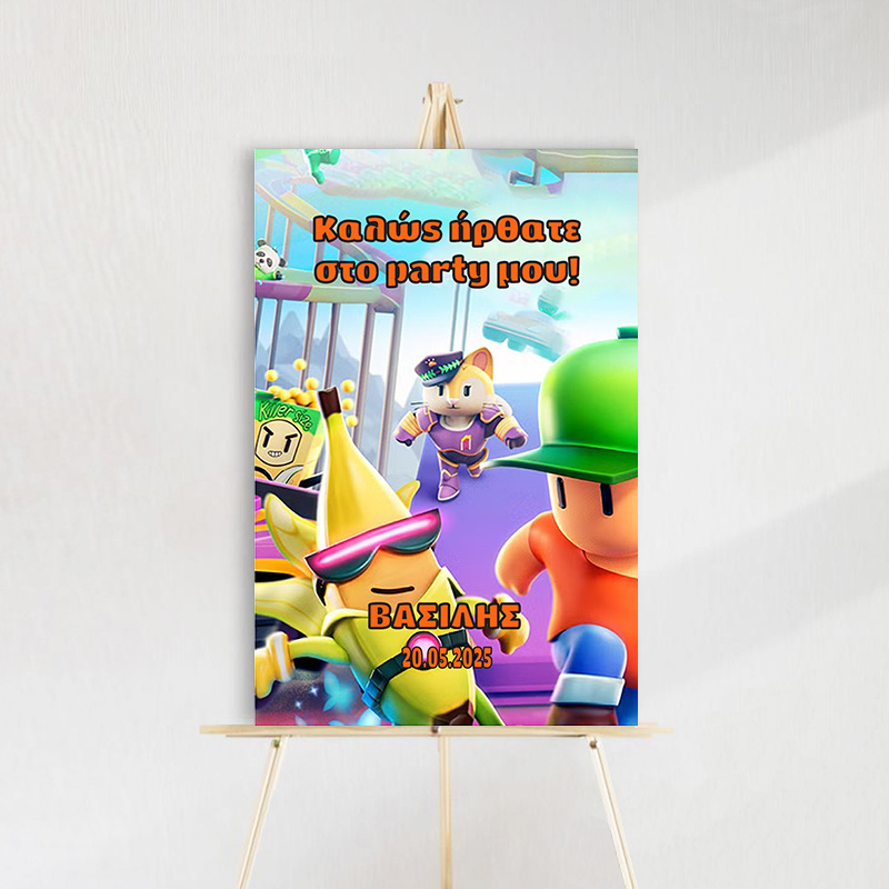 Ταμπέλα Πάρτυ με θέμα Stumble Guys, φτιαγμένη από ξύλο, διαστάσεων 60x40cm. Προσθέστε μια μαγική πινελιά στo party του παιδιού σας με αυτή την όμορφη και μοναδική διακόσμηση.