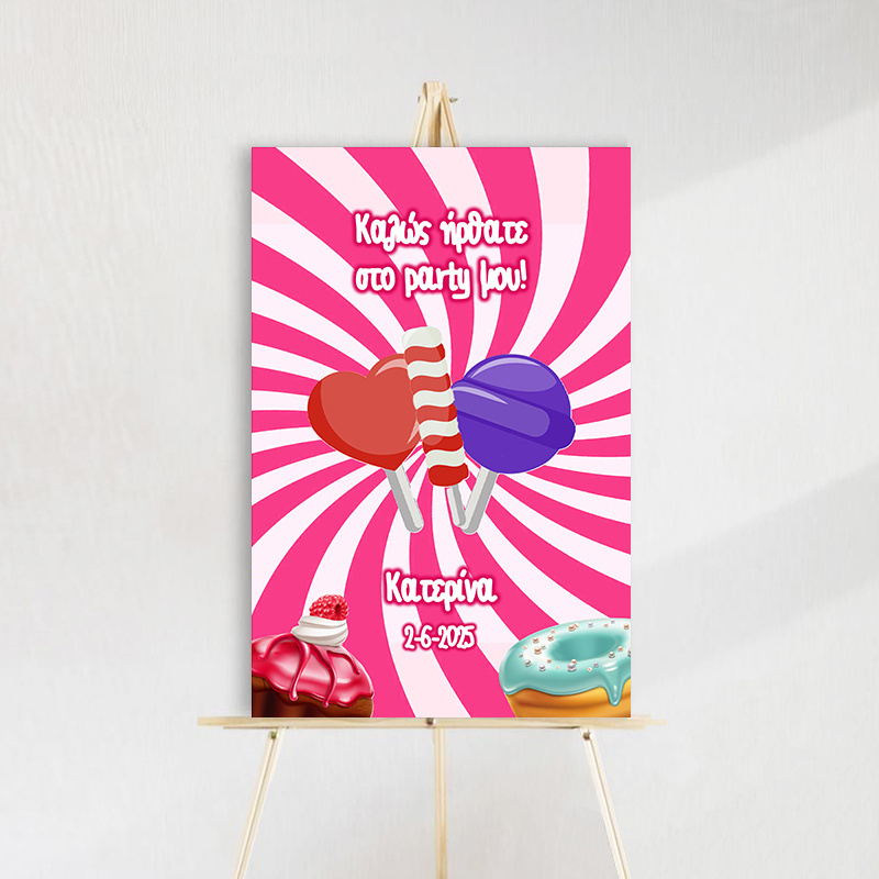 Ταμπέλα Πάρτυ με θέμα Sweet Shop, φτιαγμένη από ξύλο, διαστάσεων 60x40cm. Προσθέστε μια μαγική πινελιά στo party του παιδιού σας με αυτή την όμορφη και μοναδική διακόσμηση.