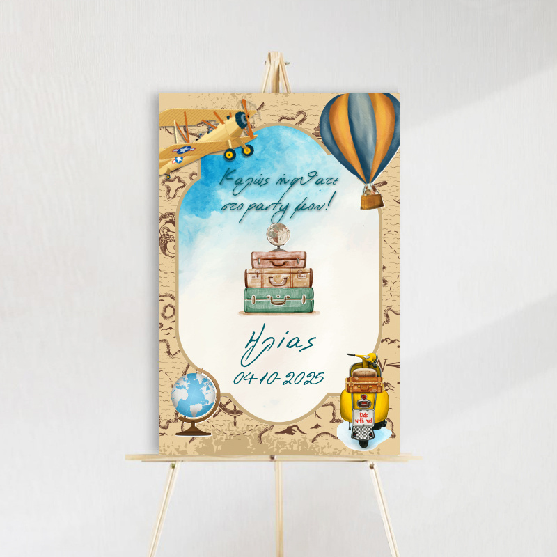 Ταμπέλα Πάρτυ με θέμα Ταξίδια, φτιαγμένη από ξύλο, διαστάσεων 60x40cm. Προσθέστε μια μαγική πινελιά στo party του παιδιού σας με αυτή την όμορφη και μοναδική διακόσμηση.