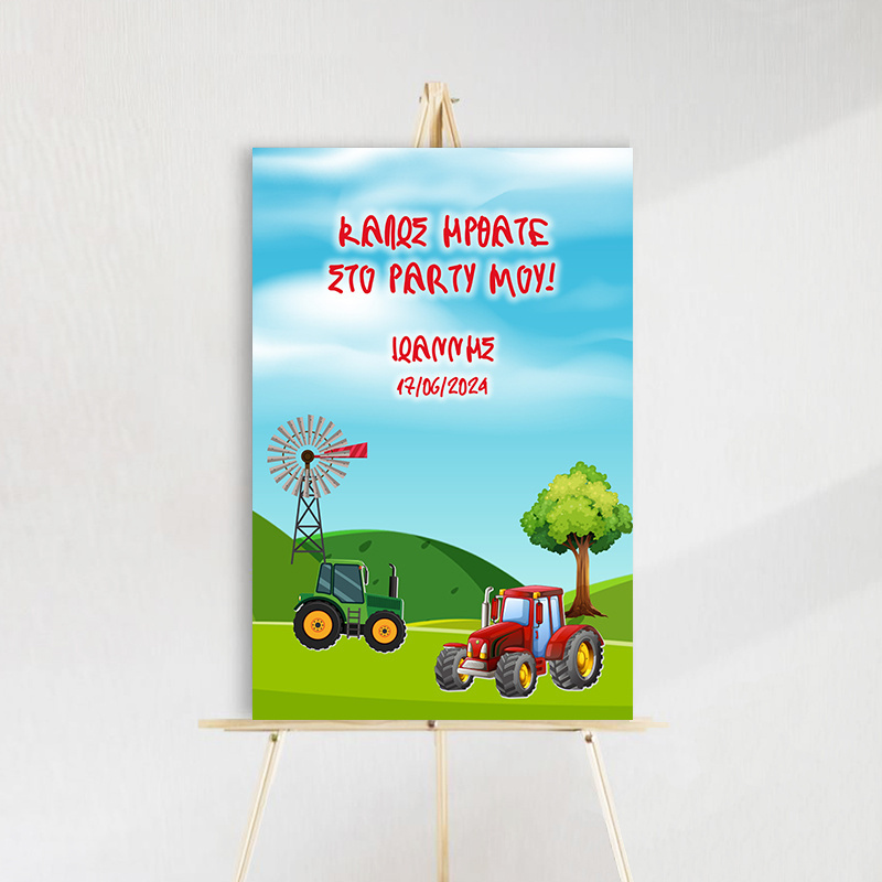 Ταμπέλα Πάρτυ με θέμα Τρακτέρ, φτιαγμένη από ξύλο, διαστάσεων 60x40cm. Προσθέστε μια μαγική πινελιά στo party του παιδιού σας με αυτή την όμορφη και μοναδική διακόσμηση.