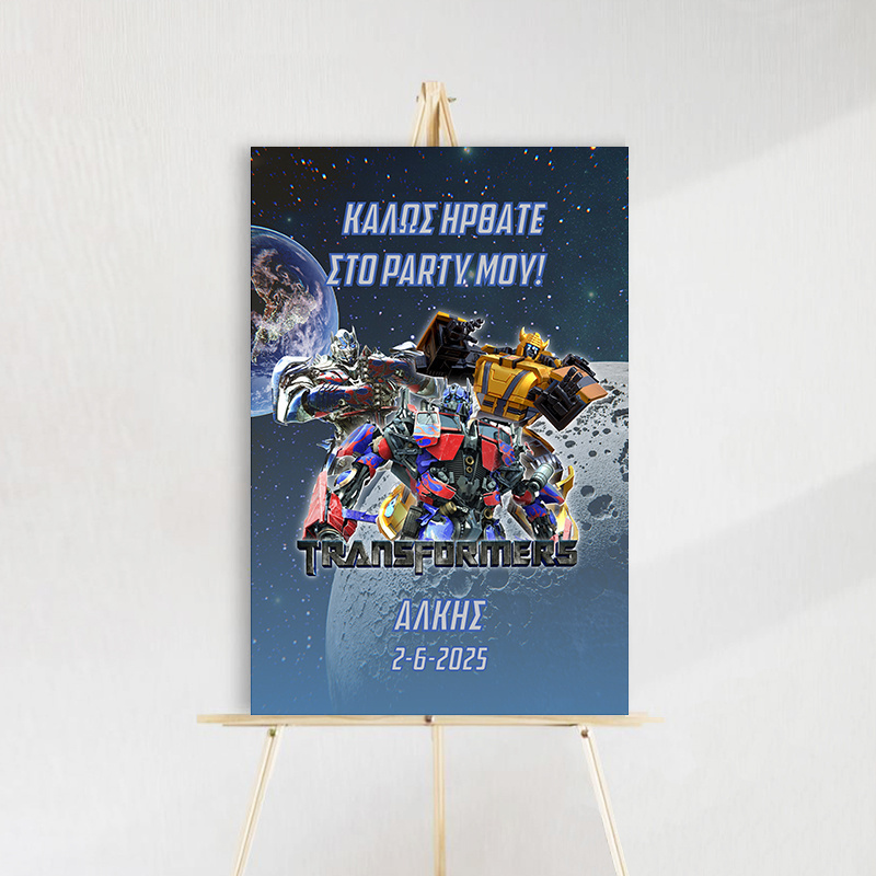 Ταμπέλα Πάρτυ με θέμα Transformers, φτιαγμένη από ξύλο, διαστάσεων 60x40cm. Προσθέστε μια μαγική πινελιά στo party του παιδιού σας με αυτή την όμορφη και μοναδική διακόσμηση.