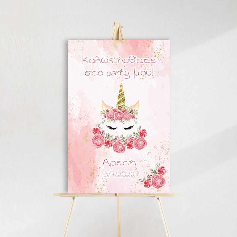 Ταμπέλα Πάρτυ με θέμα Unicorn, φτιαγμένη από ξύλο, διαστάσεων 60x40cm. Προσθέστε μια μαγική πινελιά στo party του παιδιού σας με αυτή την όμορφη και μοναδική διακόσμηση.
