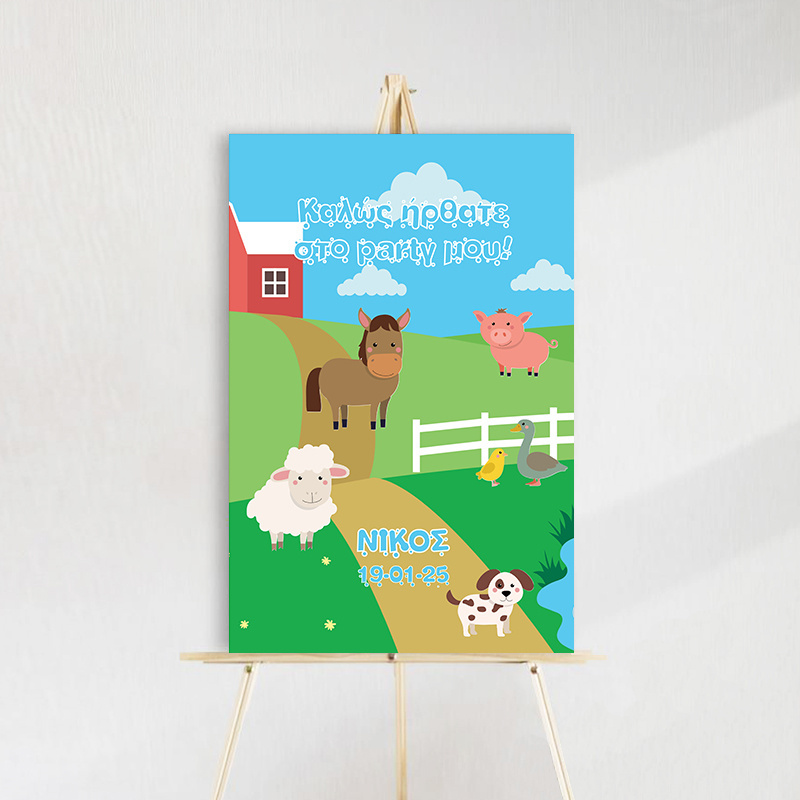 Ταμπέλα Πάρτυ με θέμα Ζωάκια Φάρμας, φτιαγμένη από ξύλο, διαστάσεων 60x40cm. Προσθέστε μια μαγική πινελιά στo party του παιδιού σας με αυτή την όμορφη και μοναδική διακόσμηση.