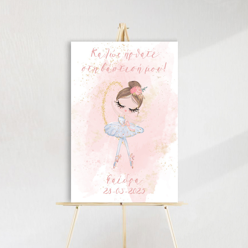Ταμπέλα βάπτισης με θέμα Μπαλαρίνα Pastel, φτιαγμένη από ξύλο, διαστάσεων 60x40cm. Προσθέστε μια μαγική πινελιά στην βάπτιση του παιδιού σας με αυτή την όμορφη και μοναδική διακόσμηση.