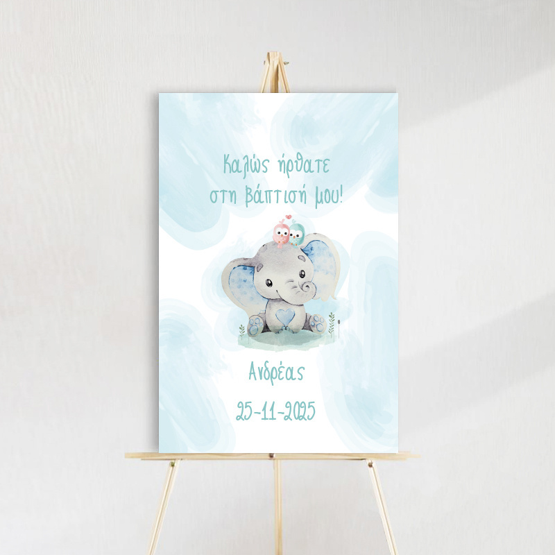 Ταμπέλα βάπτισης με θέμα Ελεφαντάκι, φτιαγμένη από ξύλο, διαστάσεων 60x40cm. Προσθέστε μια μαγική πινελιά στην βάπτιση του παιδιού σας με αυτή την όμορφη και μοναδική διακόσμηση.