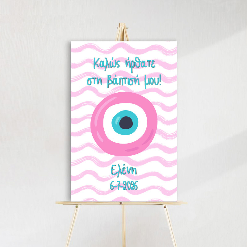 Ταμπέλα βάπτισης με θέμα Μάτι Κορίτσι, φτιαγμένη από ξύλο, διαστάσεων 60x40cm. Προσθέστε μια μαγική πινελιά στην βάπτιση του παιδιού σας με αυτή την όμορφη και μοναδική διακόσμηση.