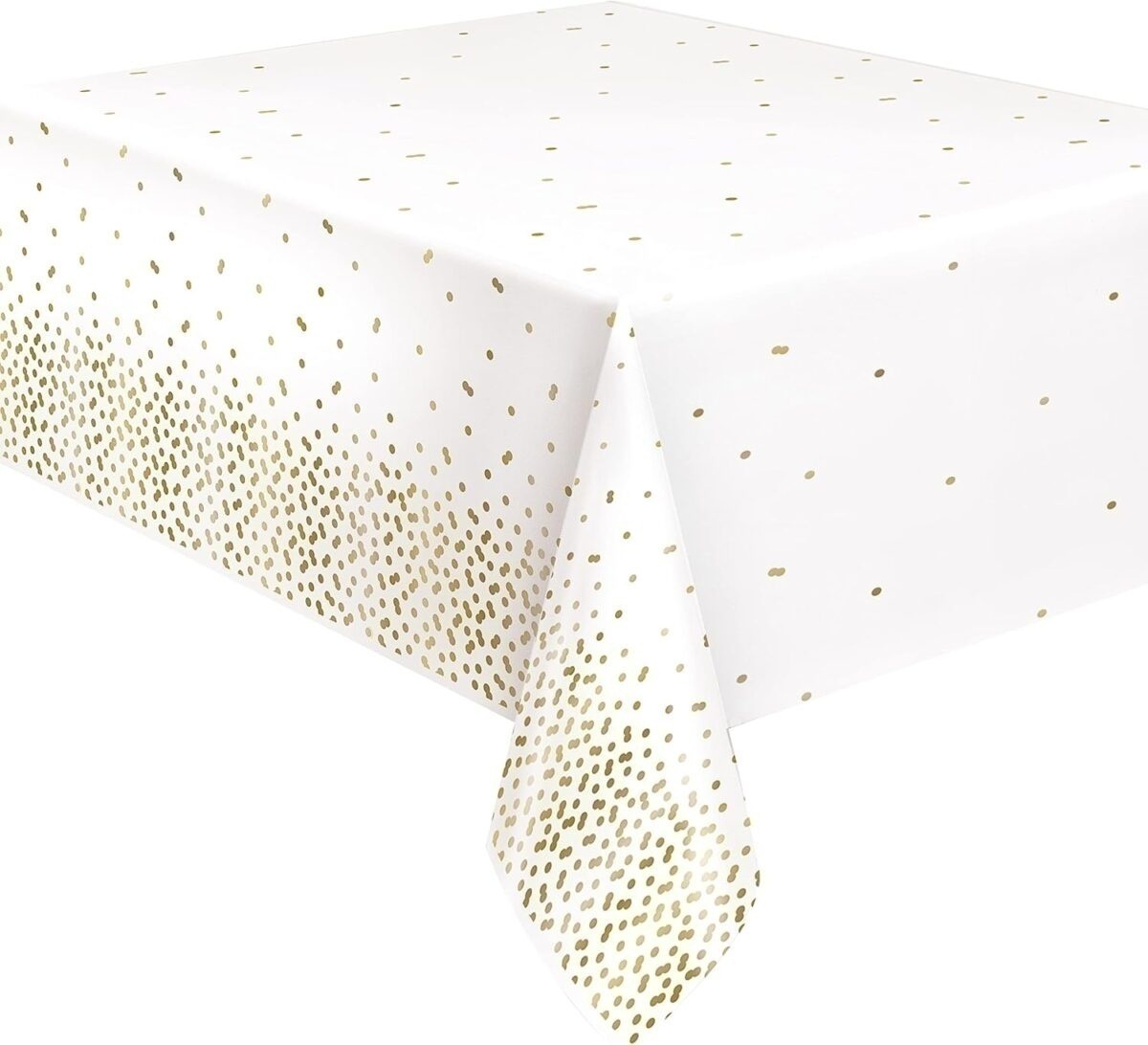 Αυτό το λευκό πλαστικό Τραπεζομάντηλο με τα χρυσά πουά έχει μέγεθος 213εκ x 137εκ θα προστατέψει με στυλ το τραπέζι σας στο πάρτι και μπορείτε να το συνδυάσετε με τα ασορτί είδη Πάρτι και Διακοσμητικά για ένα μοναδικό αποτέλεσμα.