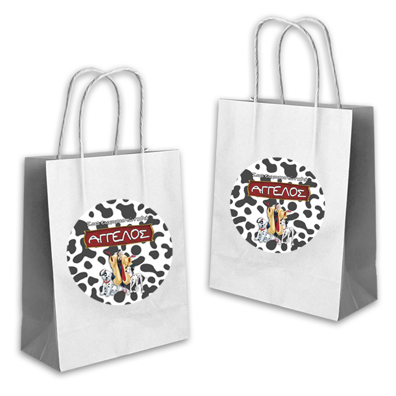 Ποιοτική τσάντα δώρου 101 Σκυλάκια Δαλματίας 22cmx18cmx8cm με το όνομα του παιδιού. Ιδανική για τα δώρα σας!(τιμή τεμαχίου).