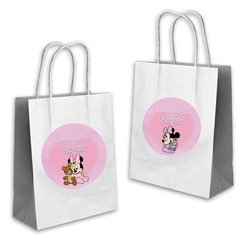 Ποιοτική τσάντα δώρου Baby Minnie 22cmx18cmx8cm με το όνομα του παιδιού. Ιδανική για τα δώρα σας!(τιμή τεμαχίου).