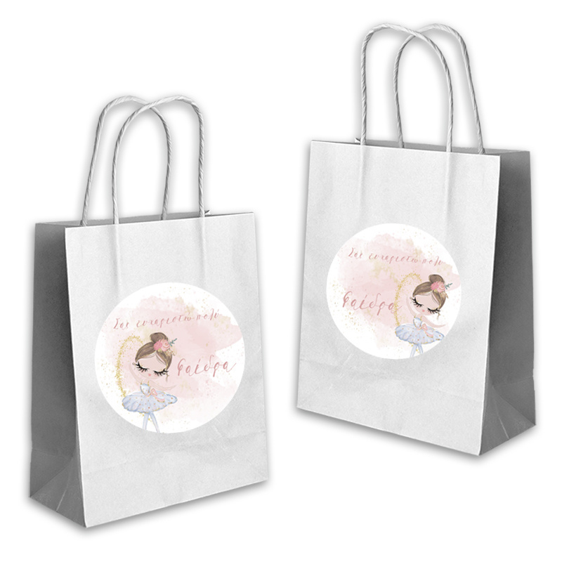 Ποιοτική τσάντα δώρου Μπαλαρίνα Pastel 22cmx18cmx8cm με το όνομα του παιδιού. Ιδανική για τα δώρα σας!(τιμή τεμαχίου).