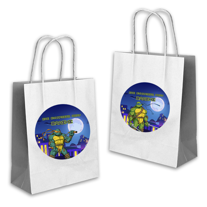 Ποιοτική τσάντα δώρου Χελωνονιντζάκια 22cmx18cmx8cm με το όνομα του παιδιού. Ιδανική για τα δώρα σας!(τιμή τεμαχίου).