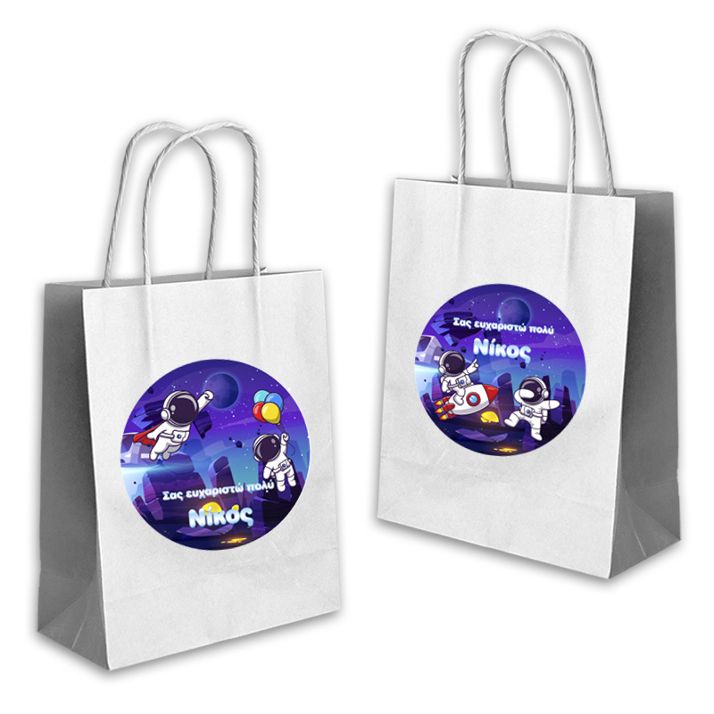 Ποιοτική τσάντα δώρου Διάστημα 22cmx18cmx8cm με το όνομα του παιδιού. Ιδανική για τα δώρα σας!(τιμή τεμαχίου).